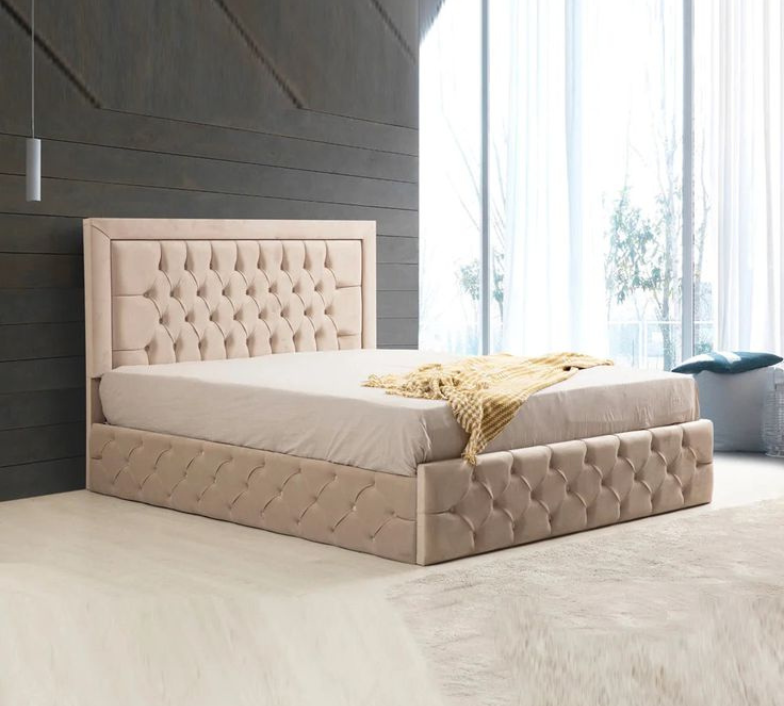 Lit Coffre Clouté en velours capitonné