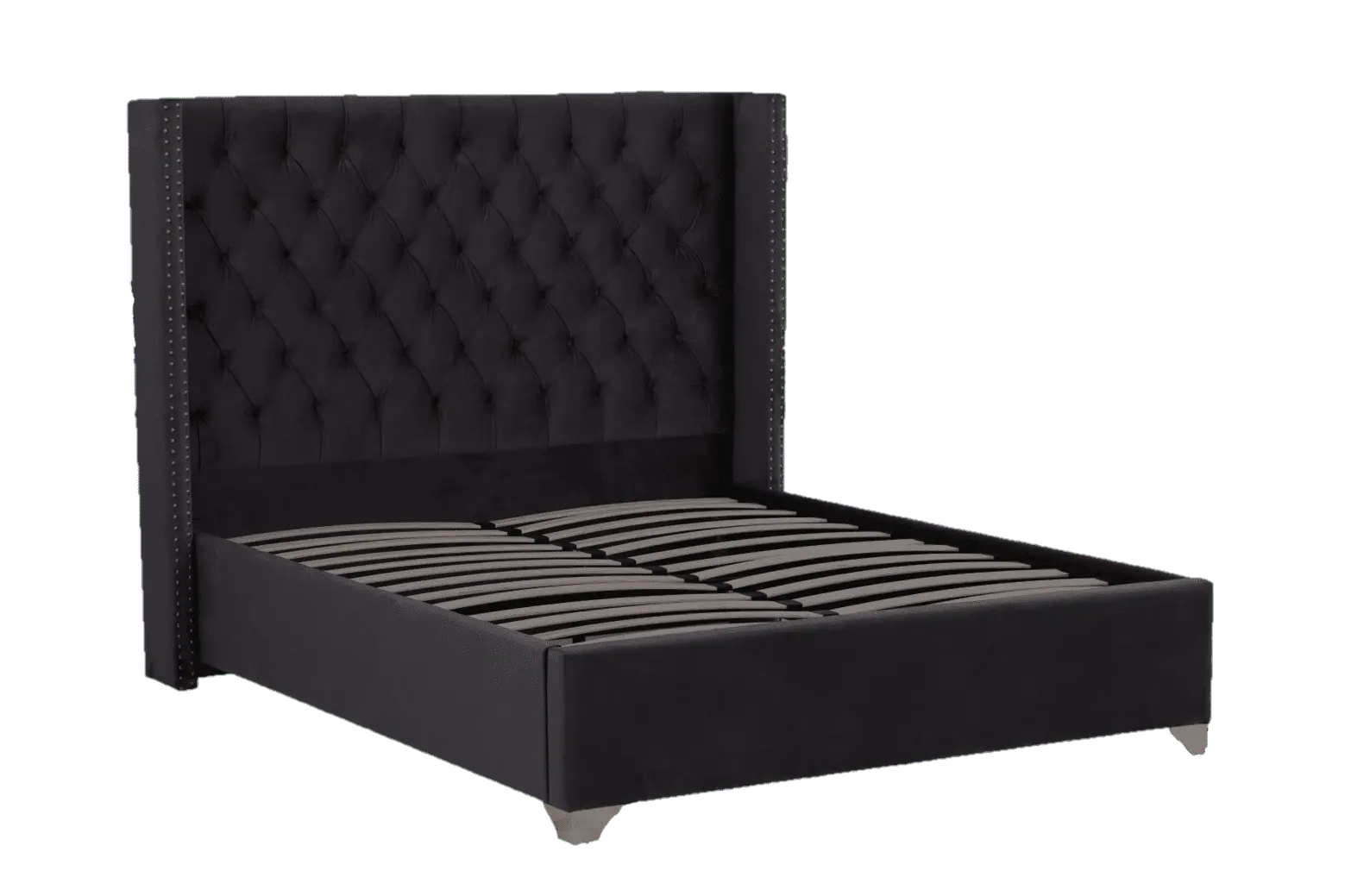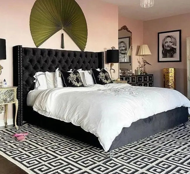 Lit Double Clouté Capitonné Velours Noir – Élégance et Confort