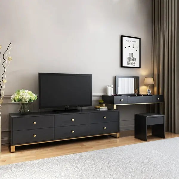 - Design Multifonctionnel : Ce meuble combine un espace pour votre téléviseur et une coiffeuse élégante, créant une atmosphère incroyable dans votre chambre.